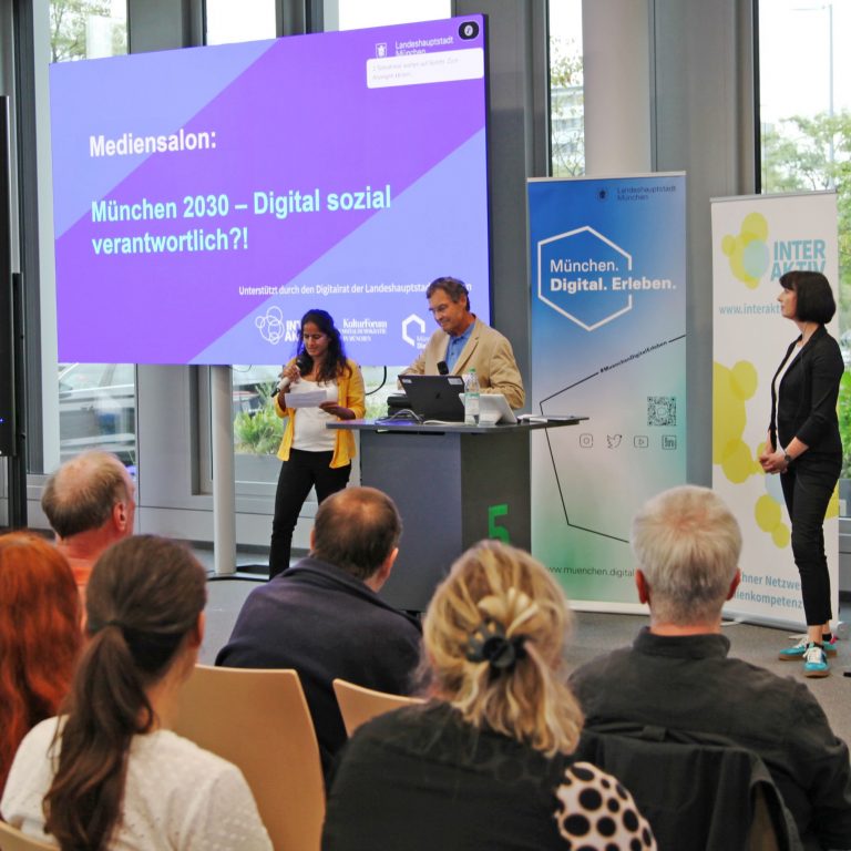 Haben Sie sich schon einmal gefragt, wie die Digitalisierung unser Leben in den kommenden Jahren verändern wird? Beim Mediensalon „München 2030“ hatten die teilnehmenden Bürger*innen die Gelegenheit, die Aspekte dieser Frage mit Expert*innen zu diskutieren und gemeinsame Ideen für die Zukunft Münchens zu entwickeln.